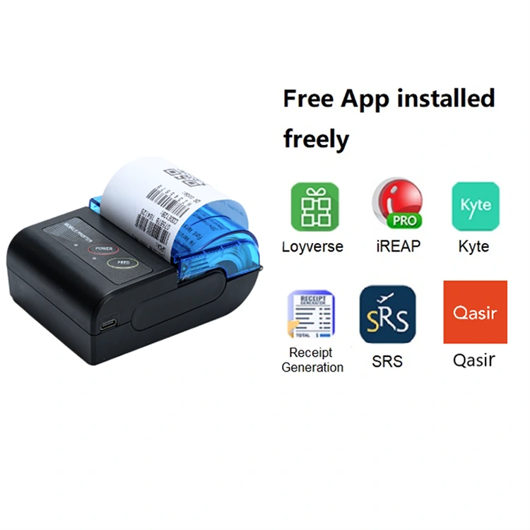 Amarga portabilitas lan bisa diisi ulang, portabel printer panrimo 58mm biasane digunakake kanggo nyetak tagihan taksi, tagihan parkir, invoice pangiriman ekspres, pesenan panganan restoran, penjualan tiket, lan liya-liyane.